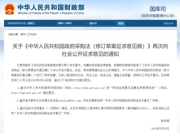 ©图:财政部国库司发布关于《中华人民共和国政府采购法(修订草案征求意见稿)》