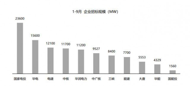 ©图:据公开数据统计,2022年1-9月企业招标规模(MW)