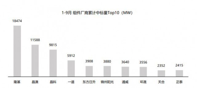 ©图:据公开数据统计,2022年1-9月组件厂商累计中标量(MW)