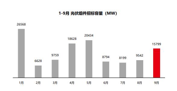 ©图:据公开数据统计,2022年1-9月光伏组件招标容量(MW)
