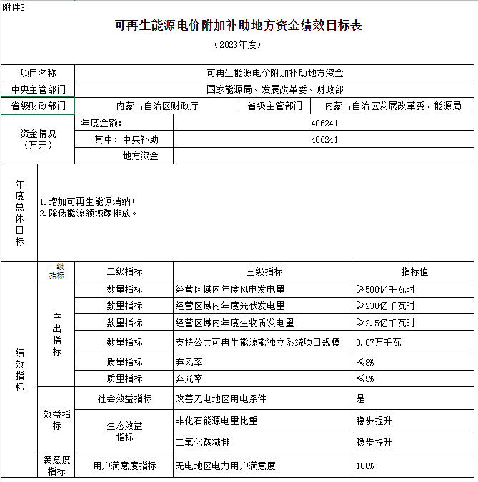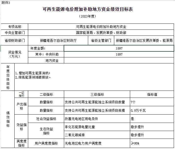 附件:1.可再生能源电价附加补助地方资金预算汇总表3.可再生能源电价附加补助地方资金绩效目标表