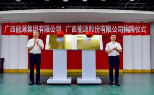 广投集团党委书记、董事长周炼,总经理刘明洪共同为广西能源集团、广西能源股份揭牌。广西能源集团是广西最大的地方能源企业,位列中国能源企业500强第23位。