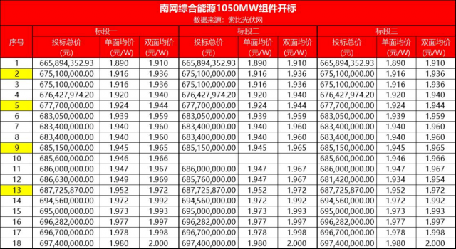 近日,索比光伏网获悉,南网能源2022年第二批晶体硅光伏组件招标已开标。从招标公告看,本次招标共1050MW,分为3个标包,各标包供货量均预估为350MW,其中P型单面130MW,P型双面220MW。
