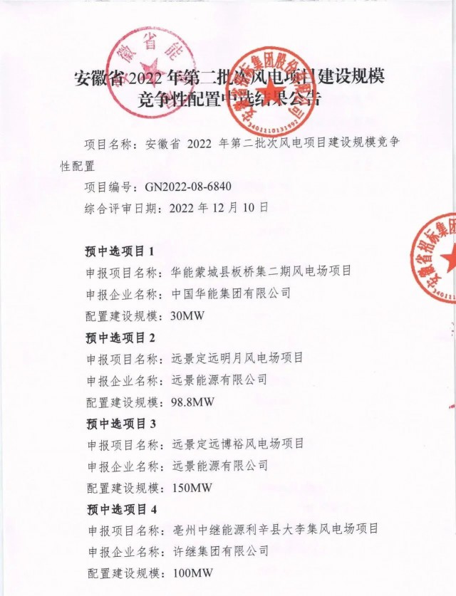 1月6日,安徽省能源局公示了2022年第二批光伏、风电项目竞争性配置优选结果,共计37个项目入选,其中光伏规模为1.5GW,项目20个;风电项目规模为1.5GW,项目17个。