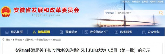 安徽省能源局关于拟收回建设规模的风电和光伏发电项目(第一批)的公示