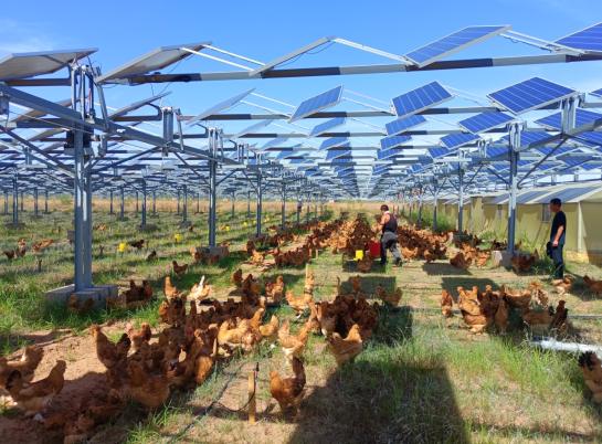 项目全面运用亿利自主创新的“板上双层发电、板下双层种植、板间双层养殖”的立体生态光伏治沙技术,通过双玻组件实现板上双面发电,可增加发电量5-10% ;板下种植优质牧草和药材等作物,实现立体生态种植;板间运用先养鸡后养羊的“畜禽草耦合”治沙技术实施养殖粪便还田治沙改土,实现了“板上发电、板下种植、板间养殖、治沙改土、乡村振兴”的“光伏+”多重效益,有效助力黄河“几字弯”防沙治沙攻坚战,助推库布其沙漠新能源治沙进程,打造黄河“几字弯”新能源治沙亮丽风景线。