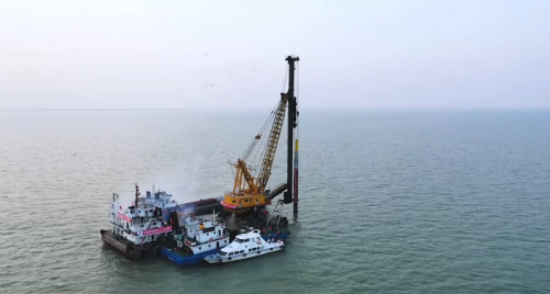 建设中的山东东营垦利100万千瓦海上光伏项目