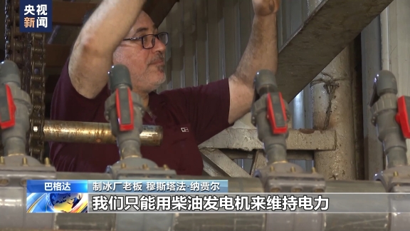 制冰厂老板 穆斯塔法·纳贾尔:每供电两小时会断电两小时,在温度升高时,电力供应会更差,停电会持续四小时,我们只能用柴油发电机来维持电力。
