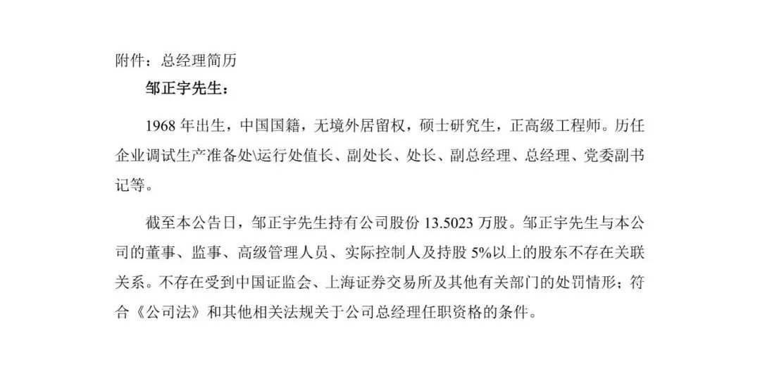 邹正宇任中国核能电力股份有限公司(以下简称“中国核电”)总经理。