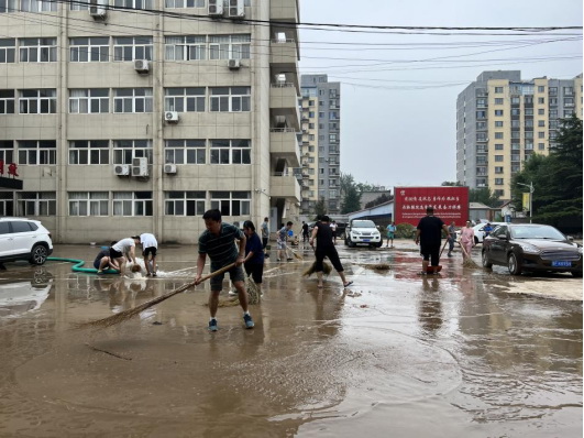 物探院党员突击队、志愿队及工会、团委志愿者及时对办公区域进行淤泥清理和消杀,检验电力设备,有序做好灾后重建,加速恢复生产工作正常秩序。