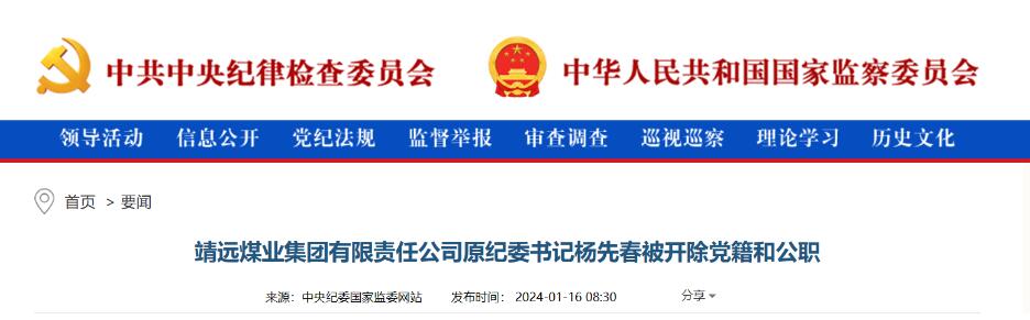 中央纪委国家监委网站1月16日消息,据甘肃省纪委监委消息:日前,经甘肃省委批准,甘肃省纪委监委对靖远煤业集团有限责任公司原纪委书记杨先春严重违纪违法问题进行了立案审查调查。