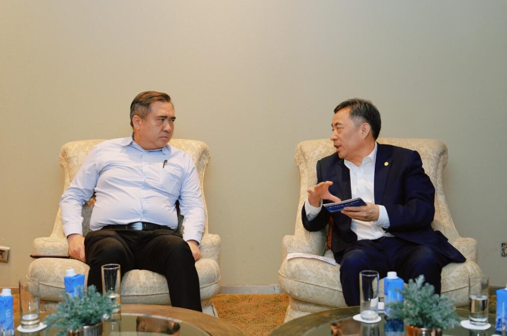 陆兆福对中国能建代表团一行到访表示欢迎,并简要介绍了马来西亚新能源及交通系统发展情况。他表示,马来西亚在“2030愿景”指导下,积极推动能源结构转型,加快风、光、储等绿色清洁能源发展,探索更多“新能源+”场景和应用。目前,正在通过加快轨道、航空和航运基础设施建设,打造绿色交通系统,推动交通行业绿色低碳发展。中国能建拥有丰富的项目建设经验和强大的技术实力,双方合作空间广阔、潜力巨大。希望中国能建充分发挥综合交通投建营一体化优势,开发水陆空等交通领域与能源融合的更多应用,在风光新能源、绿氢绿氨绿甲醇等方面开展全方位务实合作,提供更有价值、更具整体竞争力的系统化解决方案。希望双方进一步加强合作交流,共同推动马来西亚新能源发展。