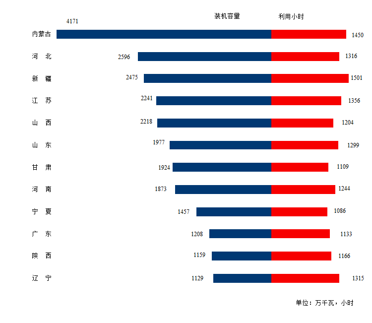 图3 1-7月份风电装机较多省份风电装机容量和设备利用小时