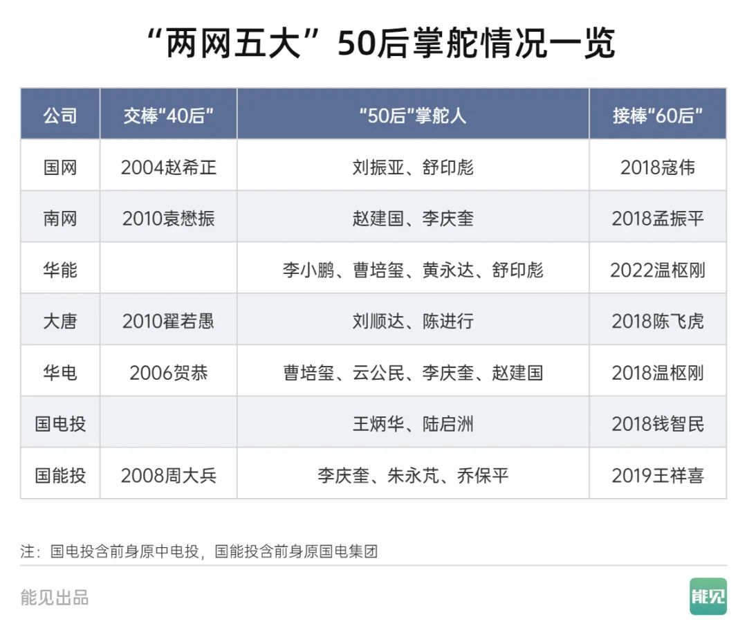 第十二位登场的是1955年1月出生的刘顺达。2010年2月,他接棒“40后”翟若愚,出任大唐集团董事长兼党组书记。至此,中国电力行业告别最后一位“40后”,正式进入“50后”全面掌舵时代。从2002年12月开始掌舵,到2010年2月全面掌舵,“50后”花了7年零2个月;相比之下,“60后”从2018年1月开始掌舵到2022年9月全面掌舵,仅仅花了4年零8个月。“50后”的早熟及其与“40后”长期并肩作战,保证了中国电力事业这艘巨轮过去二十年的平稳快速航行;而剧变的“双碳”新时代则催生出“60后”的快速成长和创新思维。