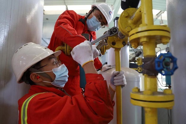 “内蒙地区昼夜温差大,冬季最低温度达零下20多度,最怕管线冻堵。”蔡会强摘下手套,摸着井口,盯着压力表说。在常规检查完油井,记录好油套压、电流、加热器进出口温度等油井各项数据后,蔡会强还要对油井进行一次憋压操作,确保节日期间油井生产正常。