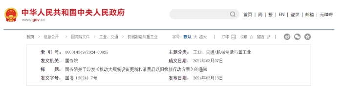 国务院关于印发《推动大规模设备更新和消费品以旧换新行动方案》的通知