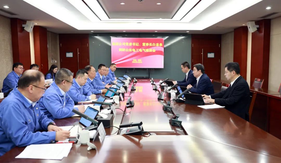 在座谈交流时,白忠泉指出,近年来,山东电工电气干部员工队伍团结进取、作风硬朗,在市场营销、产业升级、改革发展等方面取得积极成效,企业迈入高速发展阶段,为支撑集团公司战略目标落地奠定坚实基础,值得充分肯定。白忠泉强调,一是坚持市场为主,将市场营销作为企业发展的第一要素,切实发挥“压舱石”作用,巩固电网市场“基本盘”,稳妥推进新能源项目,坚定发展储能产业,全力以赴抢抓市场订单。二是加强科技创新,提高特高压产品质量水平和技术标准,攻关配网产品核心技术,不断丰富新产品、新技术,加快引进高端技术人才,提高科技成果转化率。三是深化改革发展,坚持有分有合、协调作战,着力补短板、强弱项,持续优化产业布局,提高人均劳动生产率。做强做优铁塔业务,提升生产产能,做到提质增效。四是加快智能制造,通过租赁、改造等方式增加企业用地,全力推进数字化转型、智能化改造,加快传统产业转型升级,不断扩大产能。五是超前布局“十五五”发展规划,围绕新型能源体系和新型电力系统建设,坚持装备为先,专注主责主业,重点加大配网业务投资力度,扩大优质资产持有规模。六是加强干部员工队伍建设,加快创建“强队伍、提能力、增四感”党建品牌,提升年轻干部能力水平,壮大高素质干部人才队伍。