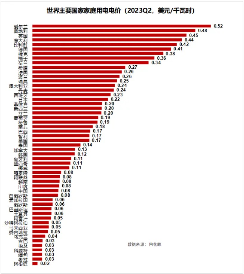 从国际比较的角度看,尤其是相比发达国家,中国的电价相当的便宜,一度电8美分左右。比较高的像德国,一度电0.41美元,折合人民币将近3块。
