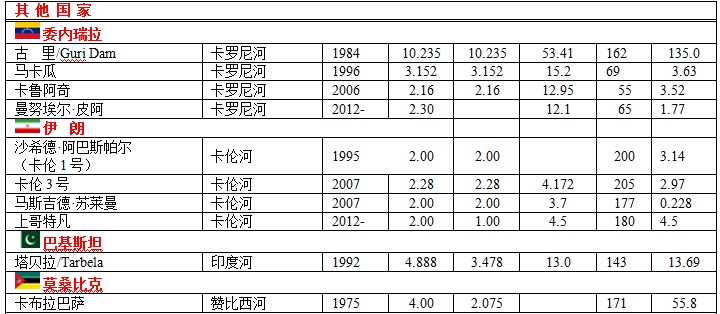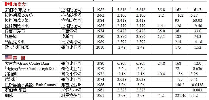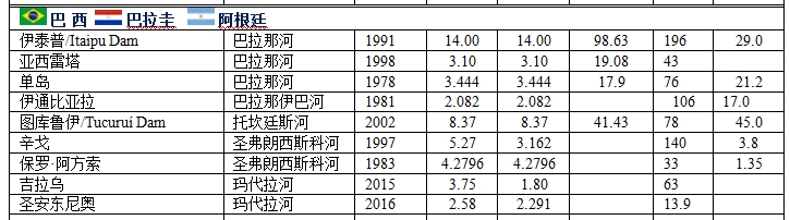 梯级水电站是世界上发展水力发电的一个重要的获取电力的方式。在制作下表时,我把相同一河流的水电站归纳在一起,您可以看出,世界上许多河流都是梯级水电站。