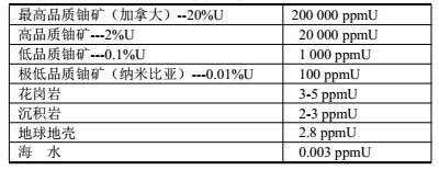 天然铀的典型浓度