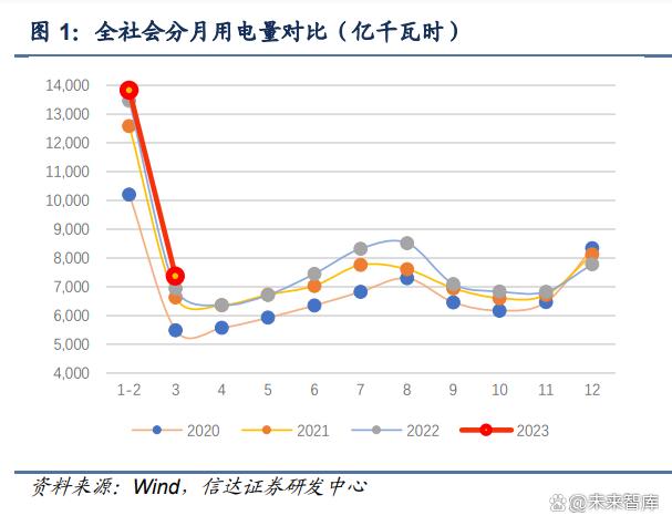 整体来看,1-3 月全国全社会用电量 21203 亿千瓦时,同比增长 3.6%;其中,1-2 月全社 会用电量同比增长 2.30%,3 月全社会用电量同比增长 5.9%。1-2 月由于疫情余波尚在、 叠加春节假期和暖冬因素,电力消费水平较为萎靡;3 月开工复苏潮渐起,电力消费增速 提高、需求回暖明显。