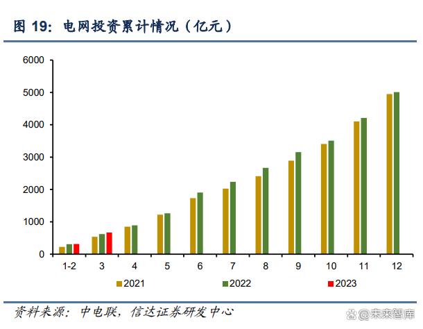 电网投资情况方面:1-3 月电网工程完成投资 668 亿元,同比增长 7.5%。2022 年电网工程 审批及建设受疫情影响,开工及完成不及预期。2023 年开年电网投资开始发力,有望在今 年保持同比高增速。