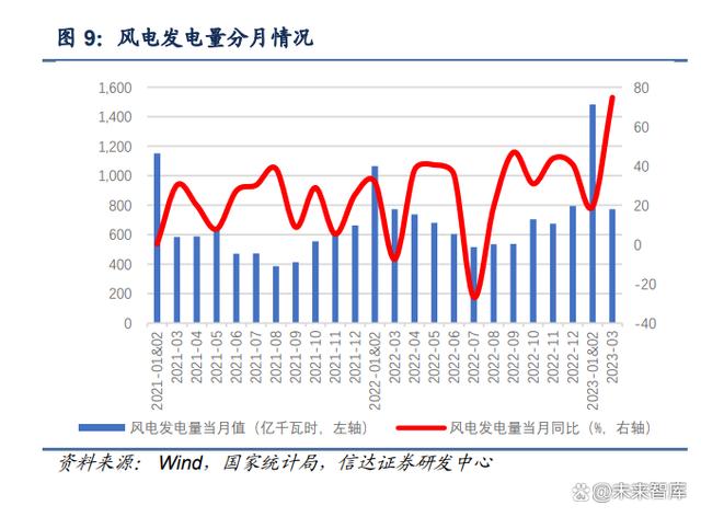 从发电情况来看,1-3 月全国累计发电量同比增长 2.4%。其中,1-2 月发电量同比增长 0.70%,而3月发电量同比增长 5.10%。分电源类型看, 1-2月火电发电量同比下降 2.30%, 而 3 月火电发电量同比增长 9.07%,增速大幅提升。1-2 月水电发电同比下降 3.40%,3 月 降幅进一步扩大至 15.50%,来水较差情况持续。据云南省水利厅,2023 年 1-2 月,云南 省大部分地区无明显降水,河道来水总体偏少,库塘蓄水总量下降加快,气象干旱发展迅 速,局部地区旱情影响逐步显现。2 月 18 日,云南省电解铝企业再度收到压减用电负荷的 限电通知,压减负荷比例扩大至 40%左右。4 月 18 日,云南防汛抗旱指挥部发布《关于调 整抗旱应急响应的通知》,将抗旱应急响应由Ⅳ级提升至Ⅲ级应急响应。云南年内来水或 将持续较差。长江三峡水库流量方面,截至 4 月 21 日,三峡出库流量 6450 立方米/秒,同 比下降 56.42%,周环比下降 11.40%,一季度以来三峡水库流量长期处于近三年流量低位。