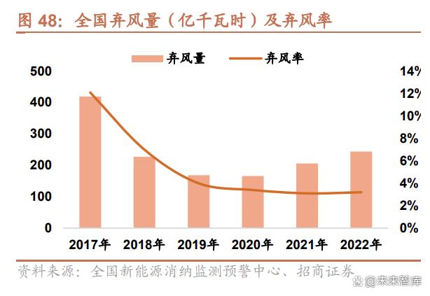 风光消纳问题改善明显,平均弃风率整体回落。2017 年我国弃风率和其光率分别高达 12.1%和 6.0%。近年来随着可 再生能源发电消纳保障措施不断落地以及电力系统灵活性改造加速,弃风率、弃光率逐渐回落。自 2019 年以来,全 国弃风率维持在 4%以下,国家电网基本实现了将弃风率控制在 5%的目标。2023 年 3 月,全国风电利用率为 96.8%, 光伏发电利用率为 98.2%;1-3 月,全国风电利用率达 96.8%,上海、江苏、浙江、安徽、福建、重庆、四川等 12个省市风电利用率达 100%;光伏利用率达 98.0%,弃光率同比下降 0.8pct。