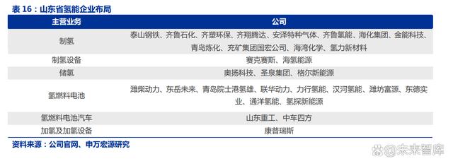 山东依靠扎实的氢能产业链落实“氢进万家”政策,未来氢能发展将与燃料电池示范城市群平行。山东省企业布局: