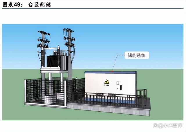 分布式台区配储:台区是指(一台)变压器的供电范围或区域,台区配储是指在每个台区 变压器低压侧配储能设施,实现对电能的储存和释放,以平衡电网负荷和提高供电可靠性, 在山东德州已有案例。户用分布式光伏的过载发电量可不经过变压器直接存储在储能设备, 从而解决了变压器的容量不足问题,相当于实现了对变压器的扩容功能。就运行策略来看, 台区储能主要是抵消中午光伏峰值发电的时段,减少光伏发电对台区电压的抬升和电网的 冲击;放电时间设置在光伏不足负荷攀升阶段,抵消台区范围内负荷攀升的影响,从调度 主体来看,单个台区的储能设备目前不需要接受电网调度,可以自行掌握充放电;多个台 区的情况下则需要统一交给电网调度充放电时间和次数。
